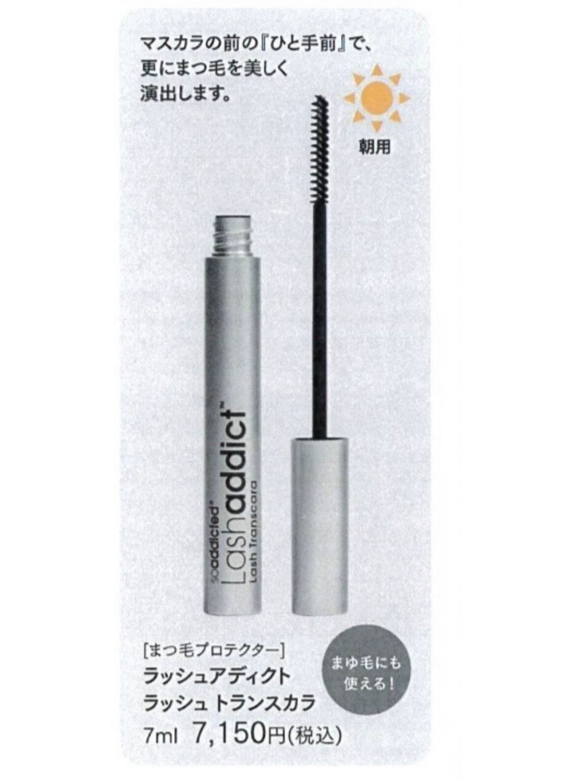 白いテクスチャーが特徴で、塗布後、徐々に透明な色へと変化するクリーム状のクリアマスカラです。