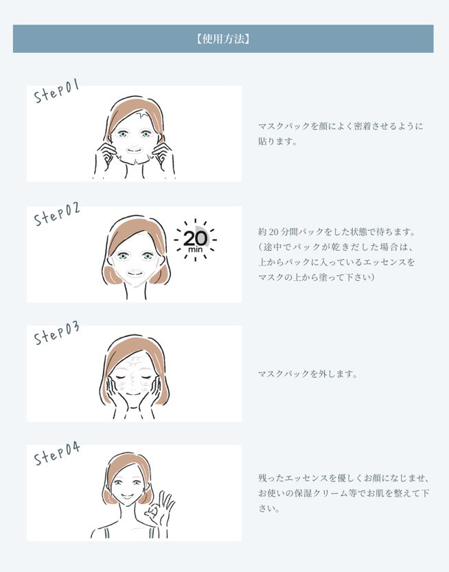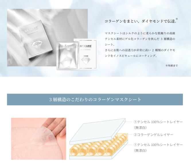 マスクシートはシルクのように柔らかな肌触りの高級テンセル素材にゲル化コラーゲンを挟んだ3層構造。