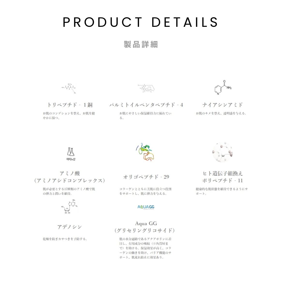 特殊な乳化工法で、独自のテクスチャーが特徴のミネラルオイルフリーのクリームです。高機能性複合ペプチドと高濃縮のAqua GG成分が年齢肌に必要な成分を与え、生き生きした健康的な肌に効果的です。